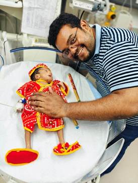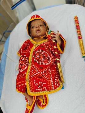 We got him a tiny cute dandiya outfit. Dressed him up in the NICU.